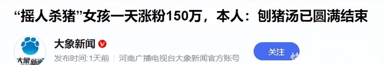 50. 部分信息来源:大象新闻|“摇人杀猪”女孩一天涨粉150万,本人:刨猪汤已圆满结束